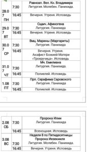 Расписание Богослужений Опубликовано 27.07.2025 sabinina08 Поделиться:TwitterВКонтактеОдноклассникиGoogle